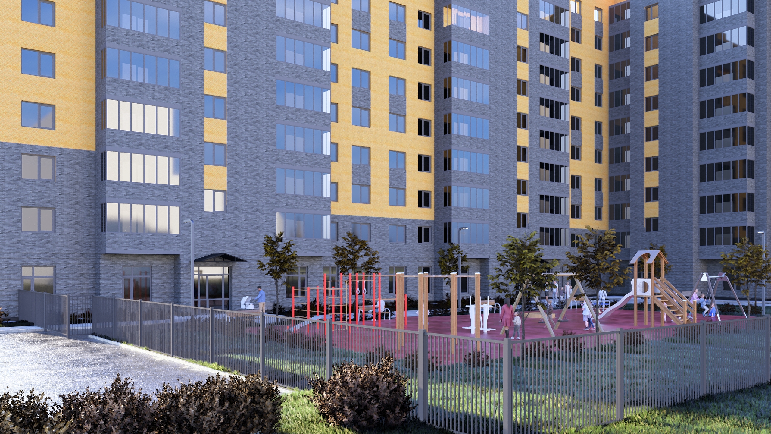 Мы ценим приватность резидентов ЖК «Королёв» и их гостей, поэтому дворовая территория будет огорожена, а входные группы снабжены умными домофонами — безопасность и удобство без посторонних.